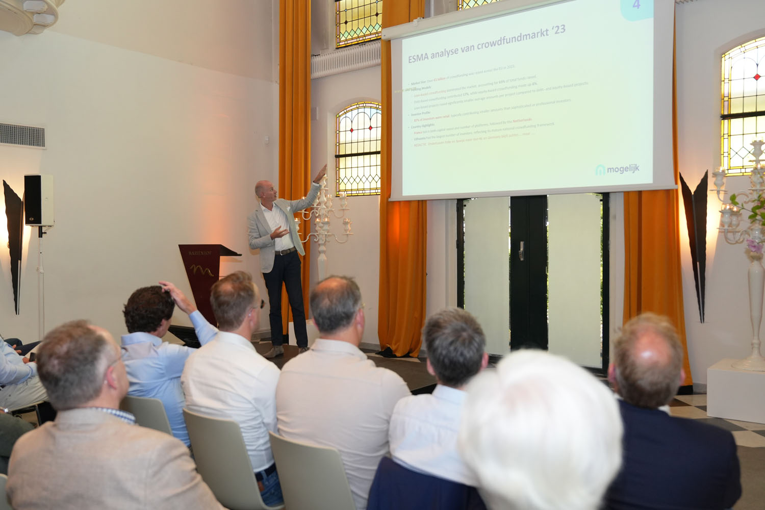 Als tweede spreker kwam Folkert Eggink, de nieuwe voorzitter van de Nederlandse crowdfunding brancheorganisatie. Hij deelde zijn ervaringen met de cultuurverschillen van het crowdfunden van internationale projecten. De belangrijkste drie punten die hij de zaal mee gaf om een project over de grens te doen slagen zijn: goede beheersing van de taal c.q. taalgebruik, begrip van de heersende fiscaliteit en kennis van de omgang met de zekerheden.