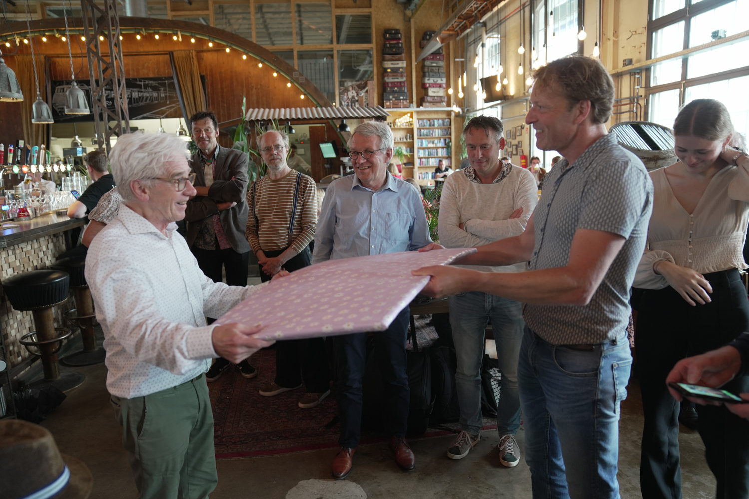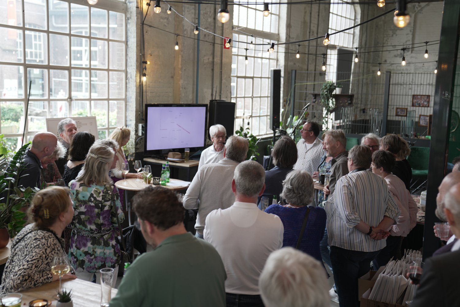 Vrijdag 20 mei vierde onze gewaardeerde collega Fons Huijgens zijn pensioen op een bijzondere wijze. Friends, familie en fans kwamen op uitnodiging van hem en zijn vrouw Els samen in en rondom de imposante LocHal te Tilburg om dit speciale moment luister bij te zetten. En speciaal werd het. Met onder andere een presentatie van journalist en filosoof Dr. Ralf Bodelier, levensliederen en carnavalskrakers van het duo ‘Lang en Gelukkig’, vioolmuziek van Theo van der Loo en accordeonmuziek door de gastheer zelf. Tilburg zal voor velen in positieve zin nooit meer hetzelfde zijn.